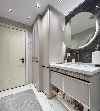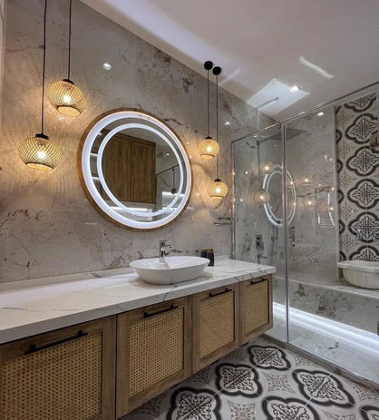 Banyo Tasarımı: Rahatlatıcı ve huzurlu bir banyo ortamı yaratmak için, en kaliteli malzemeleri ve modern tasarım trendlerini bir araya getiriyoruz. Duş sistemlerinden, lavabo ve banyo dolaplarına kadar her detayı sizin için özenle planlıyoruz. Islak alanlarda estetik ve dayanıklılığı bir arada sunuyoruz.