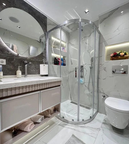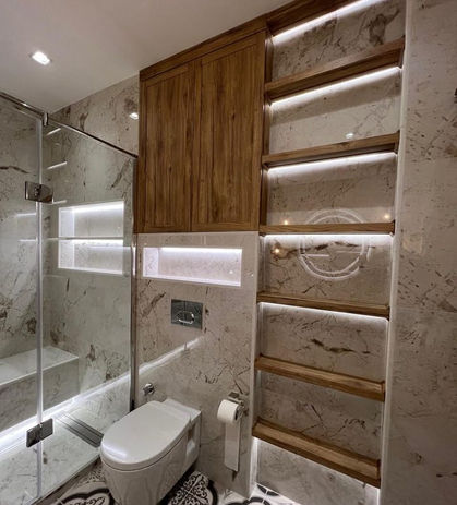 WC Tasarımı: Küçük ama önemli alanlar olan WC'lerinizi hem kullanışlı hem de estetik hale getiriyoruz. Duvar ve zemin kaplamaları, lavabolar ve aksesuar seçimleri ile WC'lerinizi modern ve temiz bir görünüme kavuşturuyoruz.